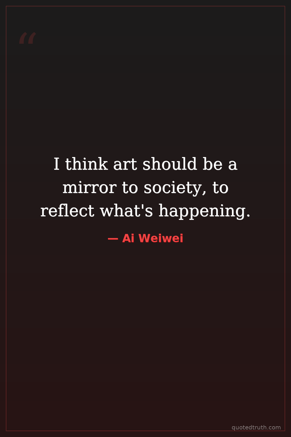 I think art should be a mirror to society, to reflect what's happening.