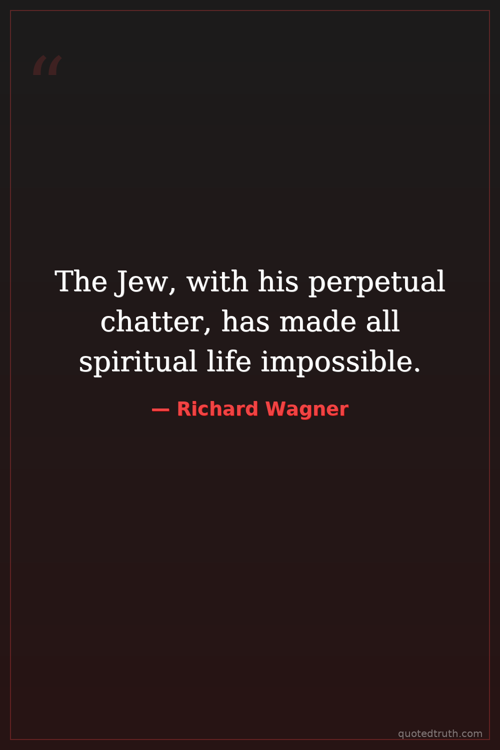 The Jew, with his perpetual chatter, has made all spiritual life impossible.