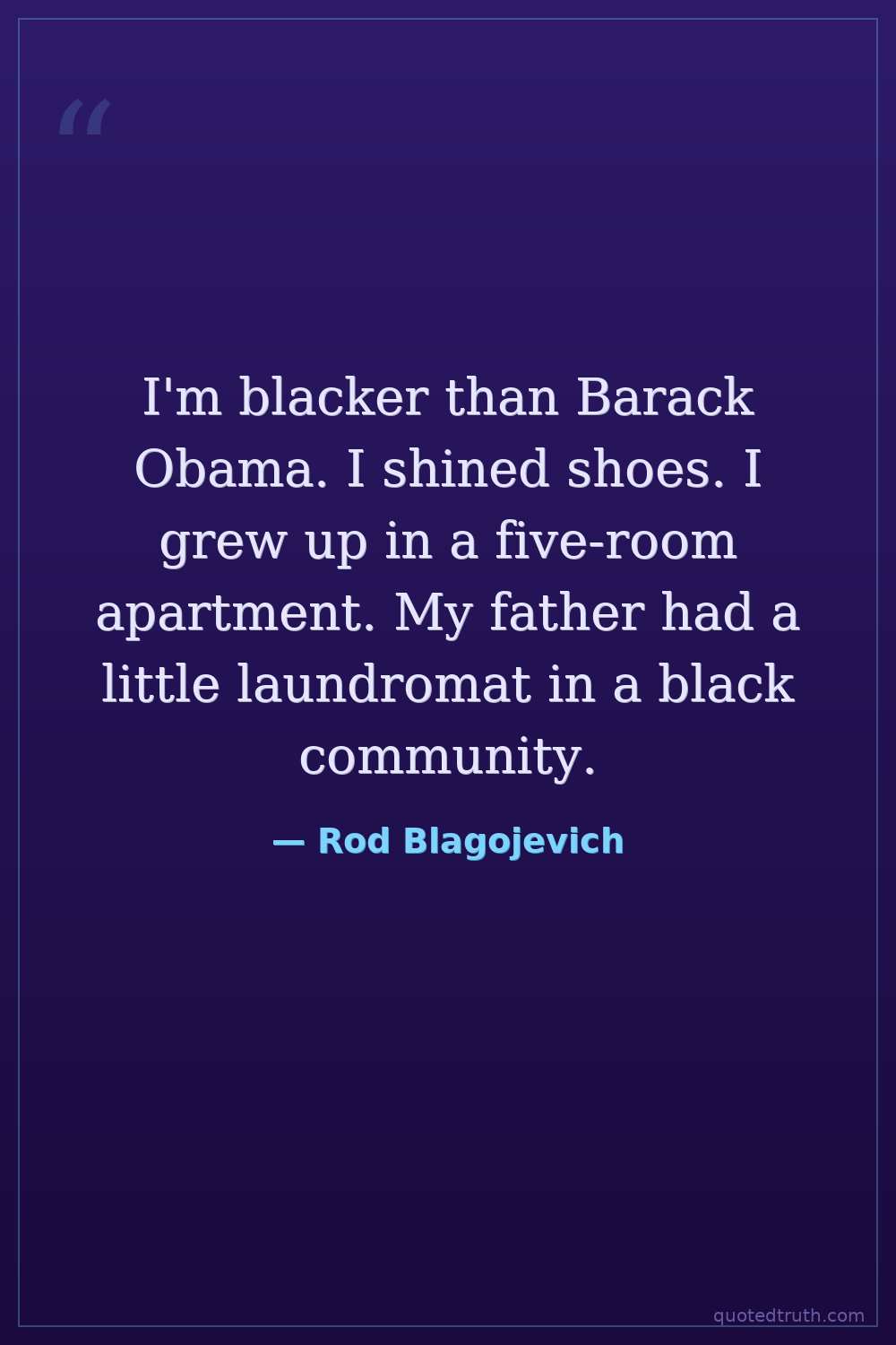 I'm blacker than Barack Obama. I shined shoes. I grew up in a five-room apartment. My father had a little laundromat in a black community.