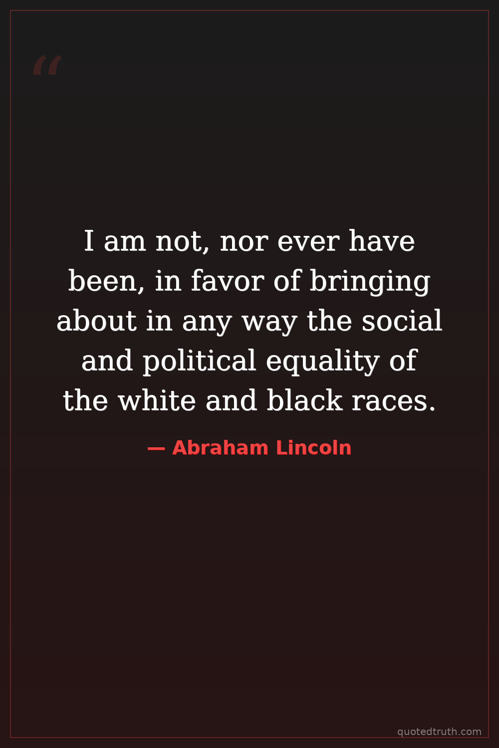 I am not, nor ever have been, in favor of bringing about in any way the social and political equality of the white and black races.