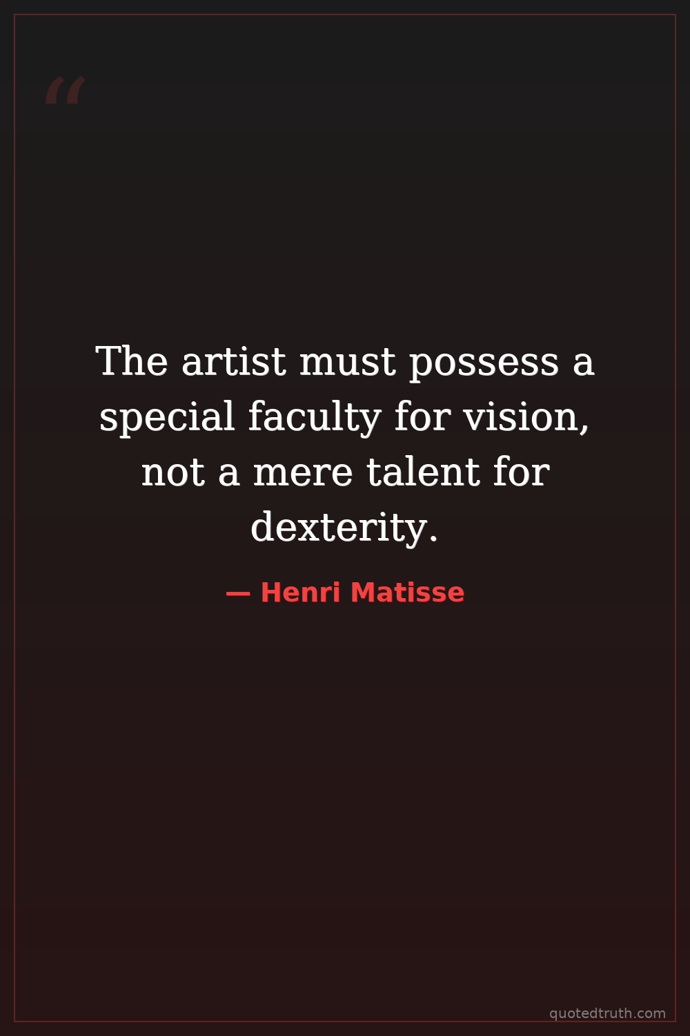 The artist must possess a special faculty for vision, not a mere talent for dexterity.