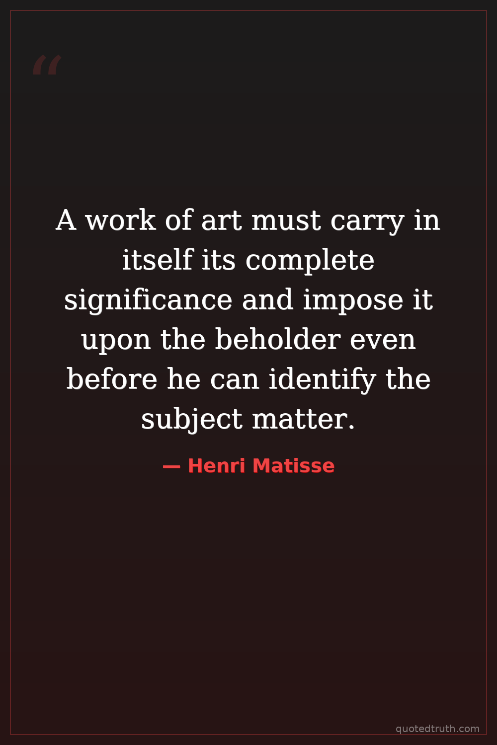 A work of art must carry in itself its complete significance and impose it upon the beholder even before he can identify the subject matter.
