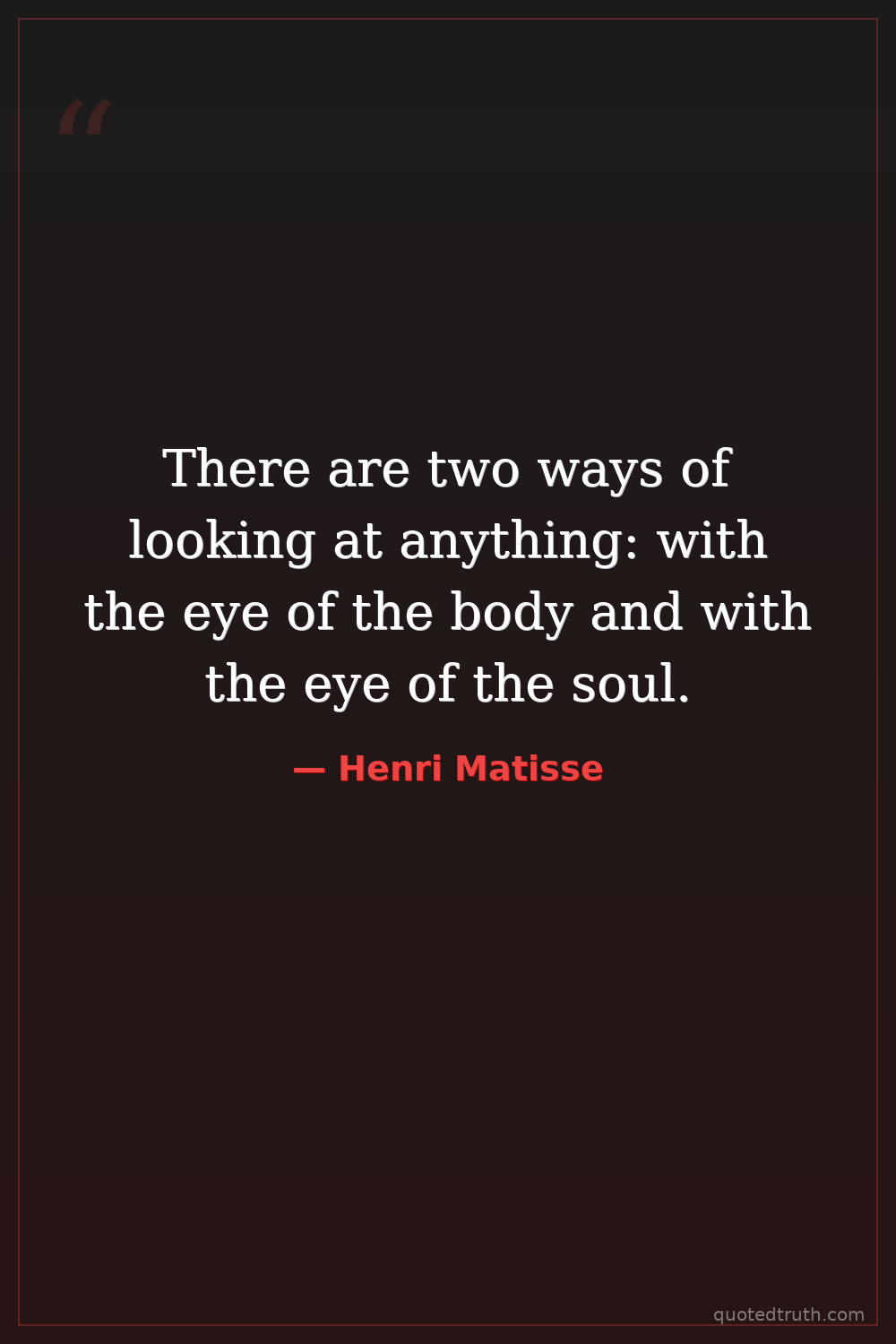 There are two ways of looking at anything: with the eye of the body and with the eye of the soul.