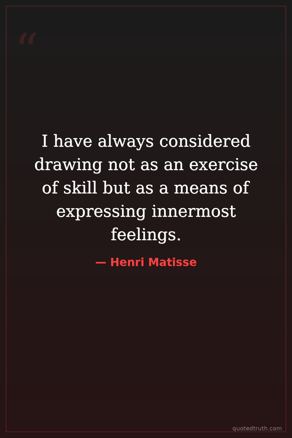 I have always considered drawing not as an exercise of skill but as a means of expressing innermost feelings.