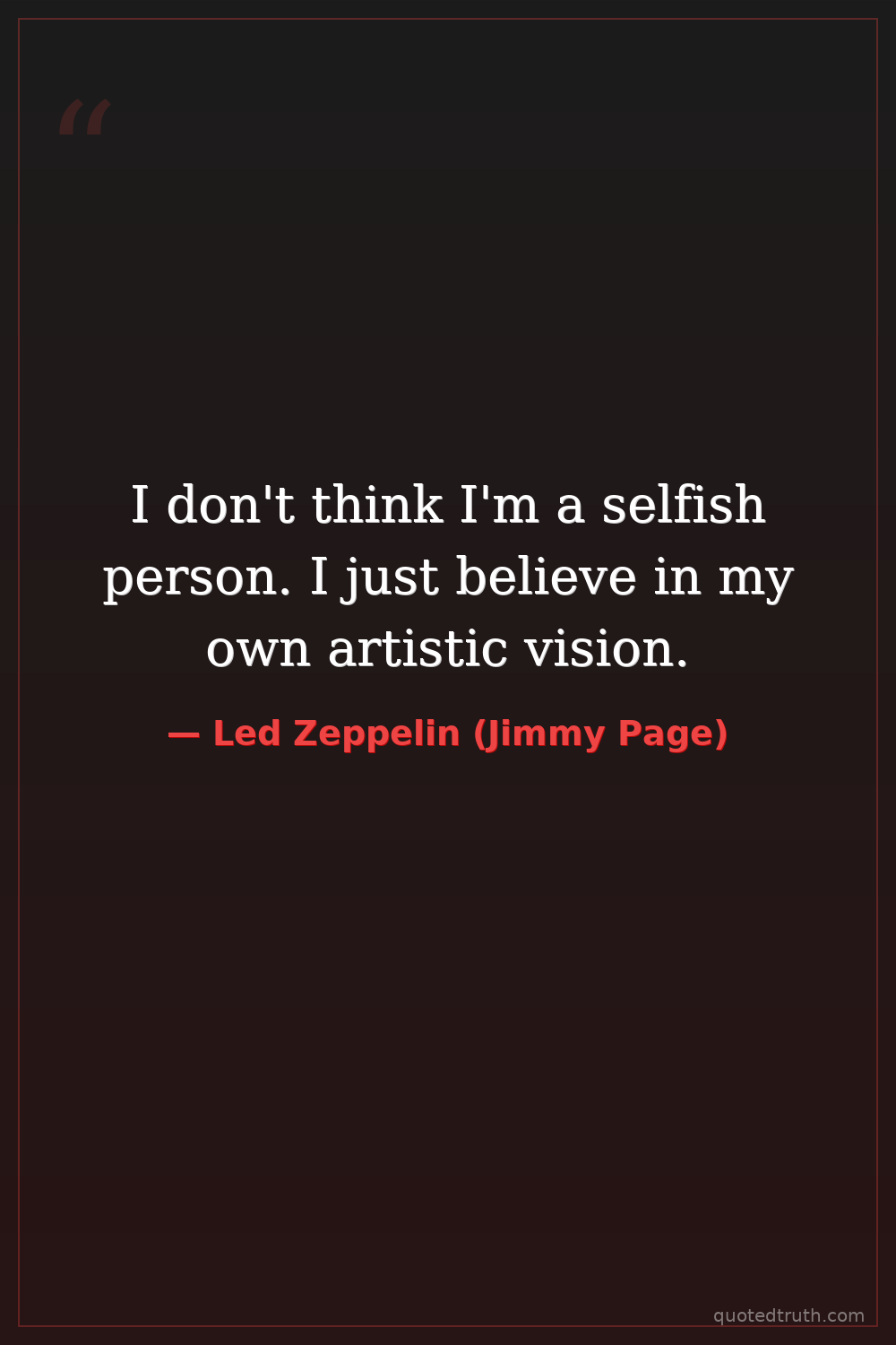 I don't think I'm a selfish person. I just believe in my own artistic vision.