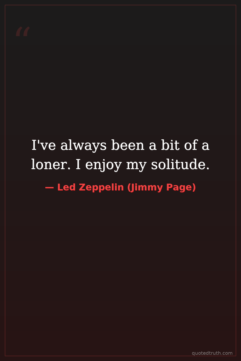 I've always been a bit of a loner. I enjoy my solitude.