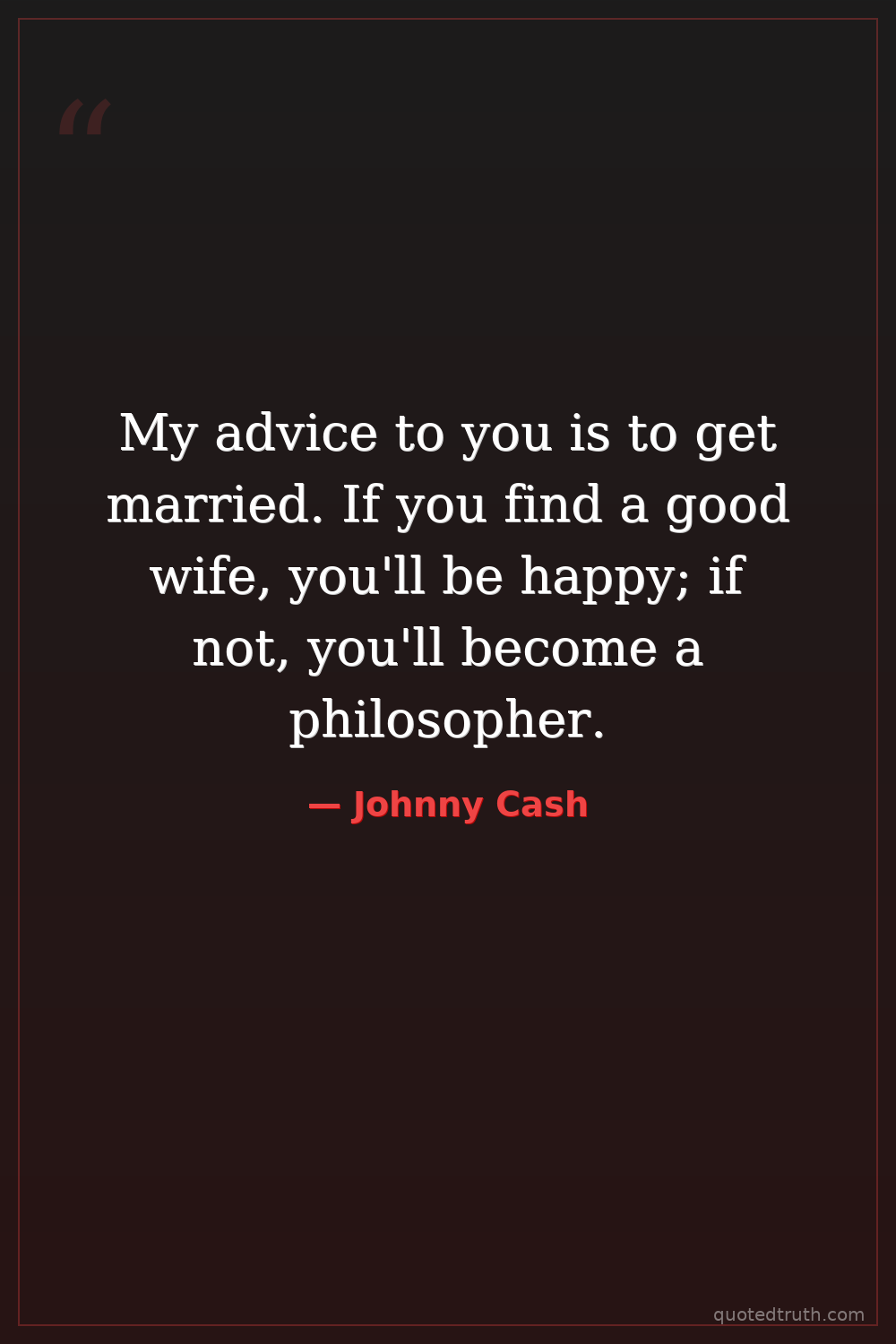 My advice to you is to get married. If you find a good wife, you'll be happy; if not, you'll become a philosopher.
