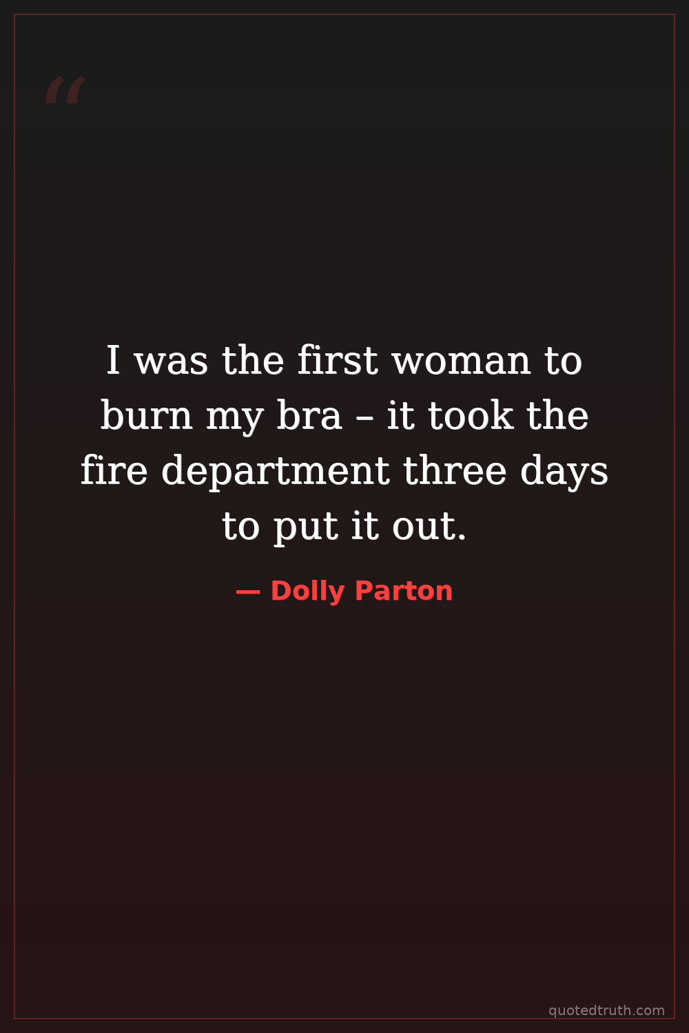 I was the first woman to burn my bra – it took the fire department three days to put it out.