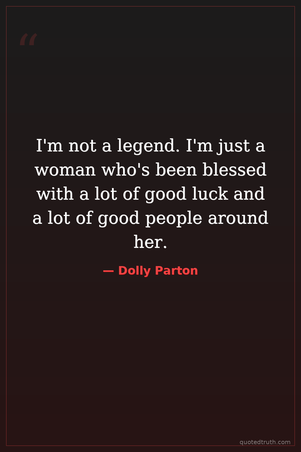 I'm not a legend. I'm just a woman who's been blessed with a lot of good luck and a lot of good people around her.
