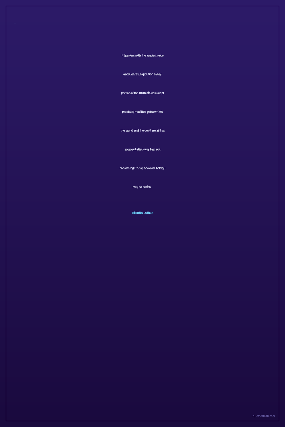 If I profess with the loudest voice and clearest exposition every portion of the truth of God except precisely that little point which the world and the devil are at that moment attacking, I am not confessing Christ, however boldly I may be professing Christ. Where the battle rages, there the loyalty of the soldier is proved; and to be steady on all the battlefield besides, is mere flight and disgrace if he flinches at that one point.