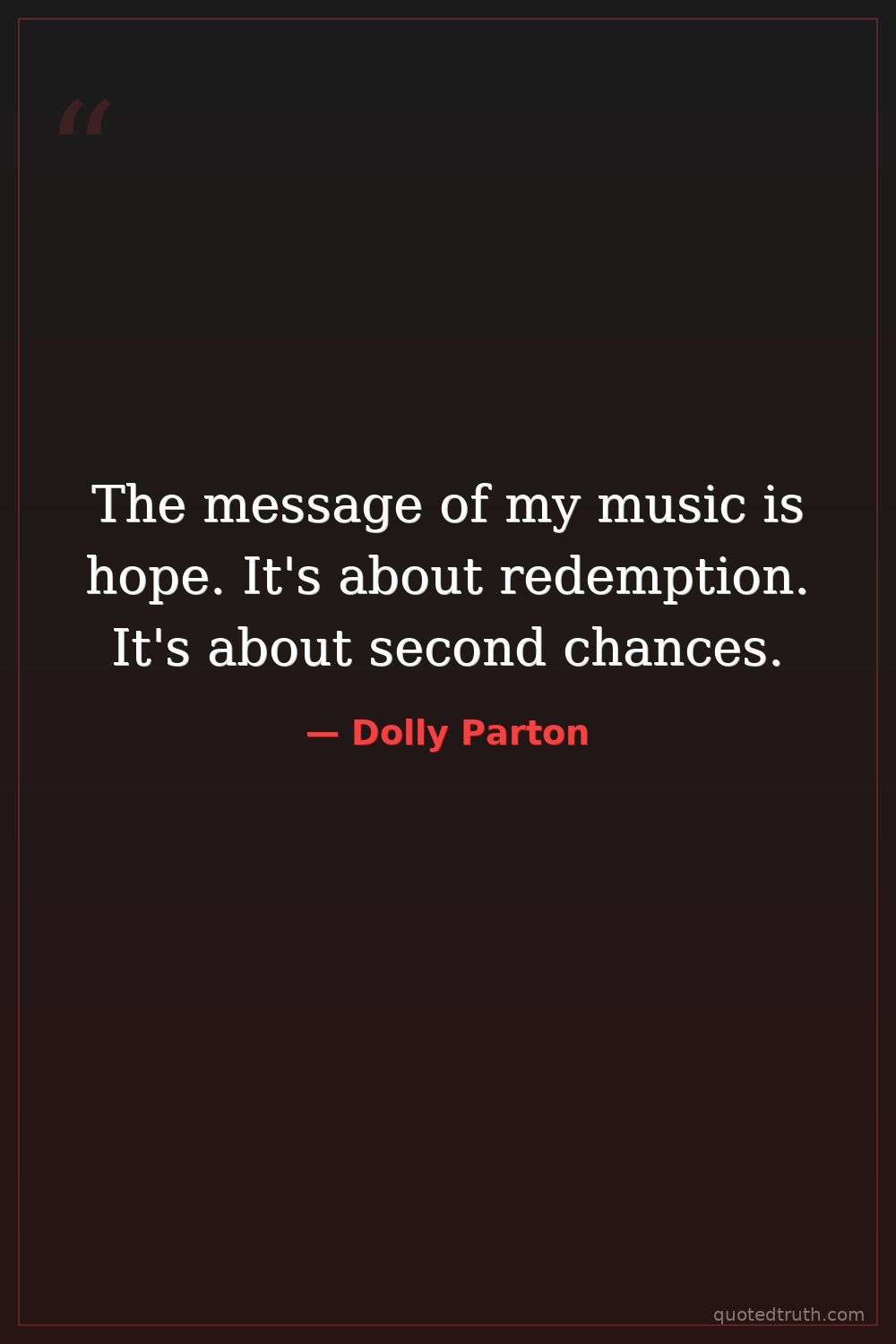 The message of my music is hope. It's about redemption. It's about second chances.