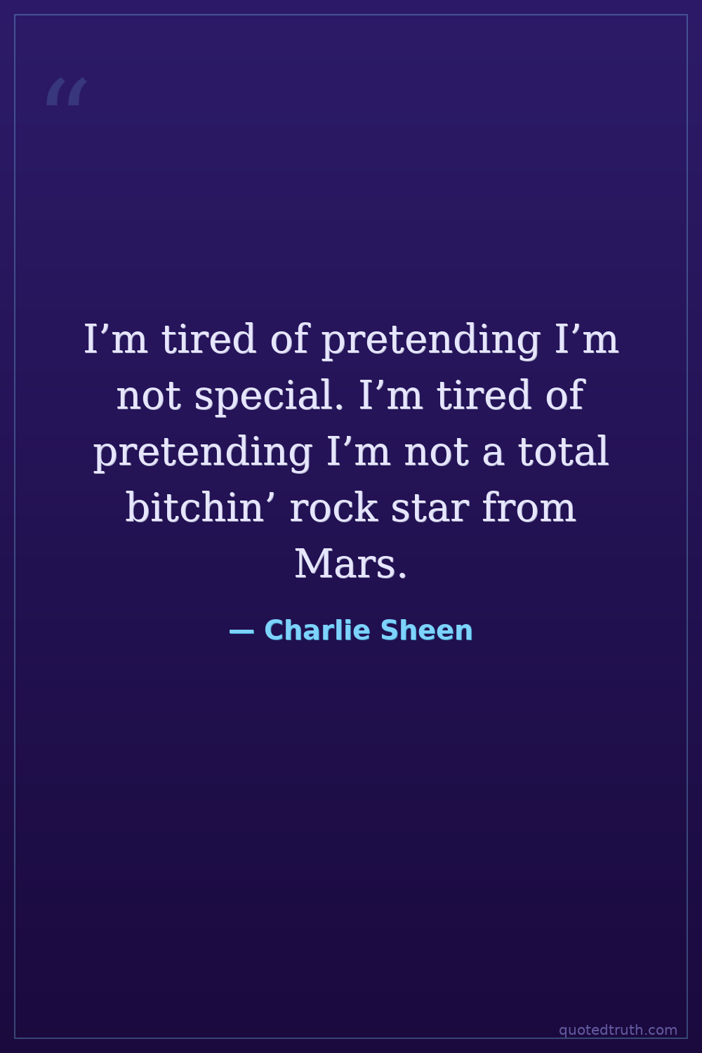 I’m tired of pretending I’m not special. I’m tired of pretending I’m not a total bitchin’ rock star from Mars.