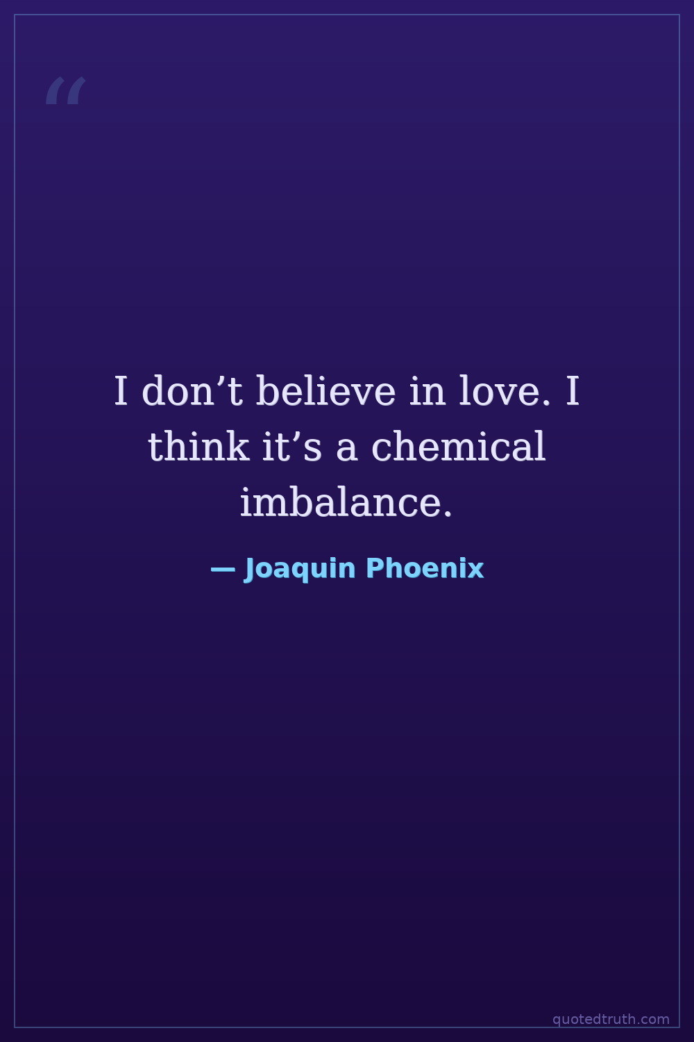 I don’t believe in love. I think it’s a chemical imbalance.