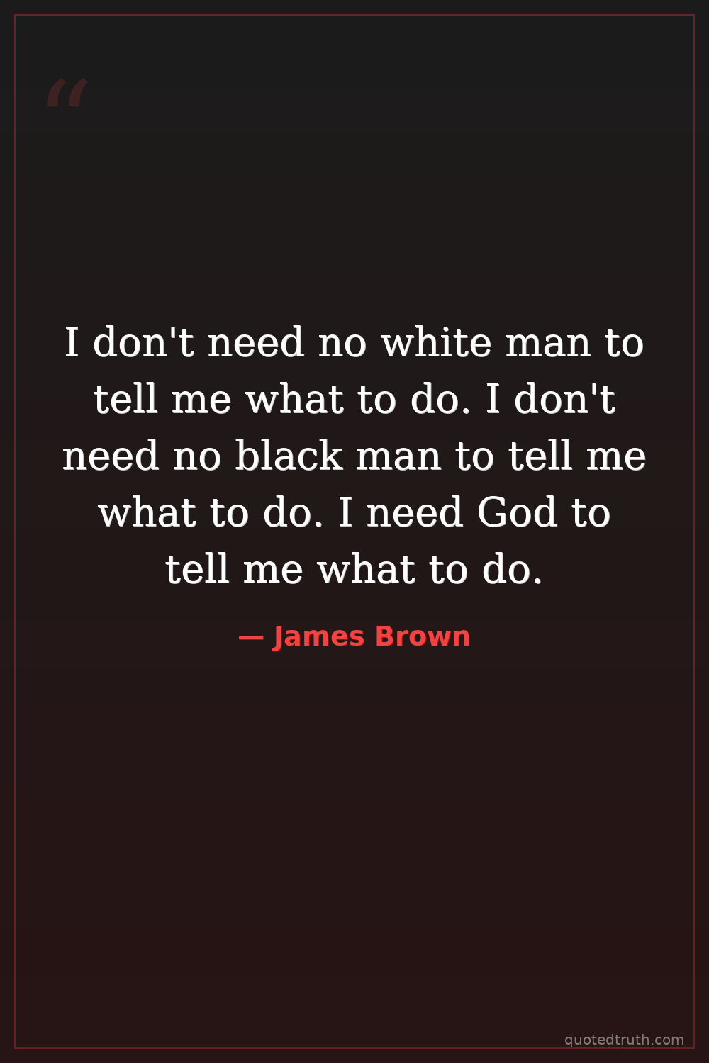 I don't need no white man to tell me what to do. I don't need no black man to tell me what to do. I need God to tell me what to do.