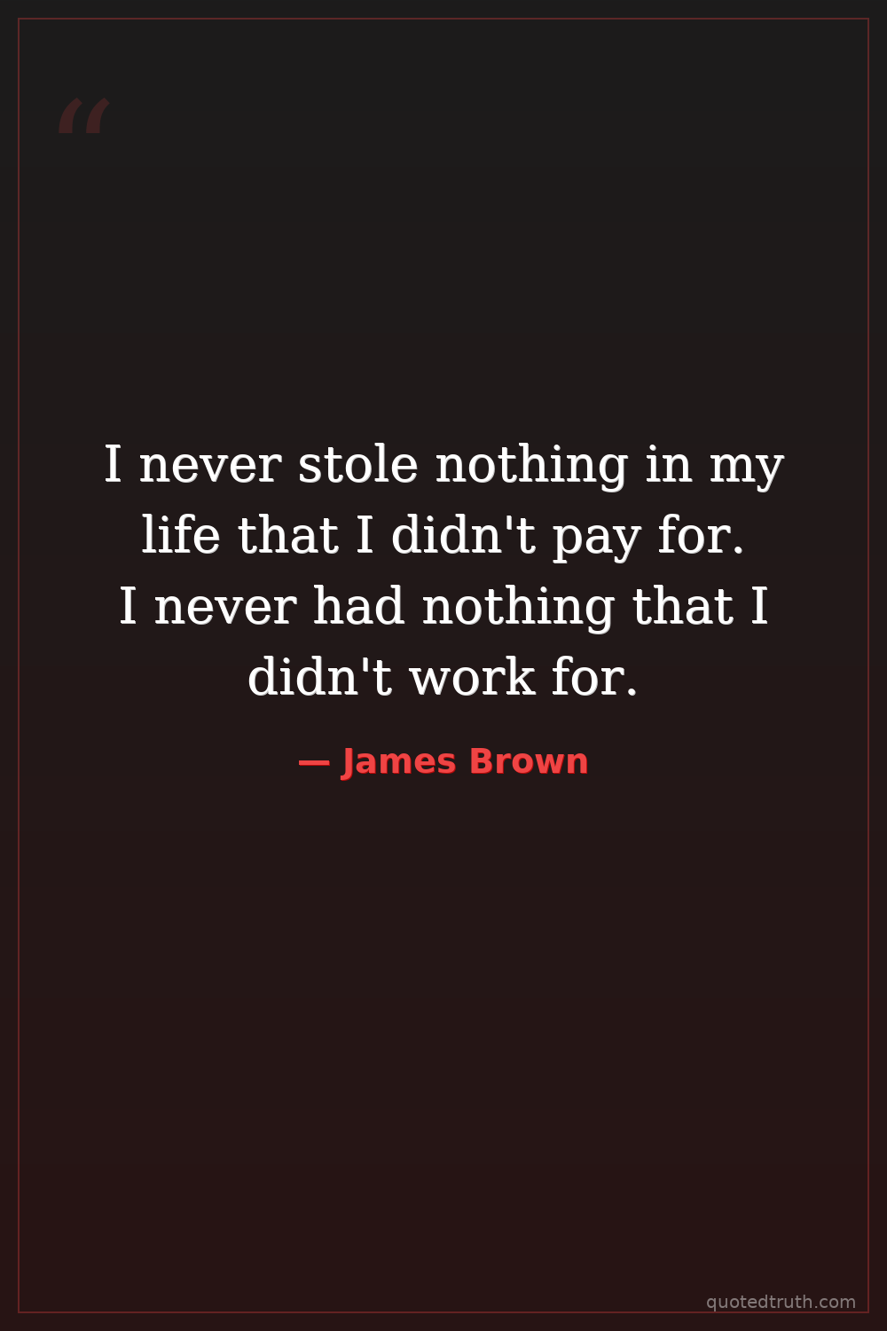 I never stole nothing in my life that I didn't pay for. I never had nothing that I didn't work for.
