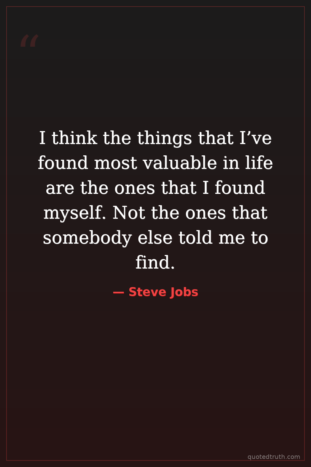 I think the things that I’ve found most valuable in life are the ones that I found myself. Not the ones that somebody else told me to find.