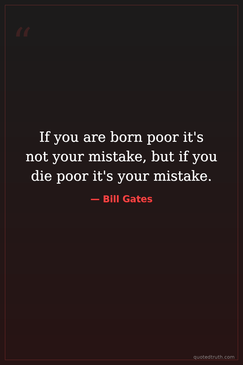If you are born poor it's not your mistake, but if you die poor it's your mistake.