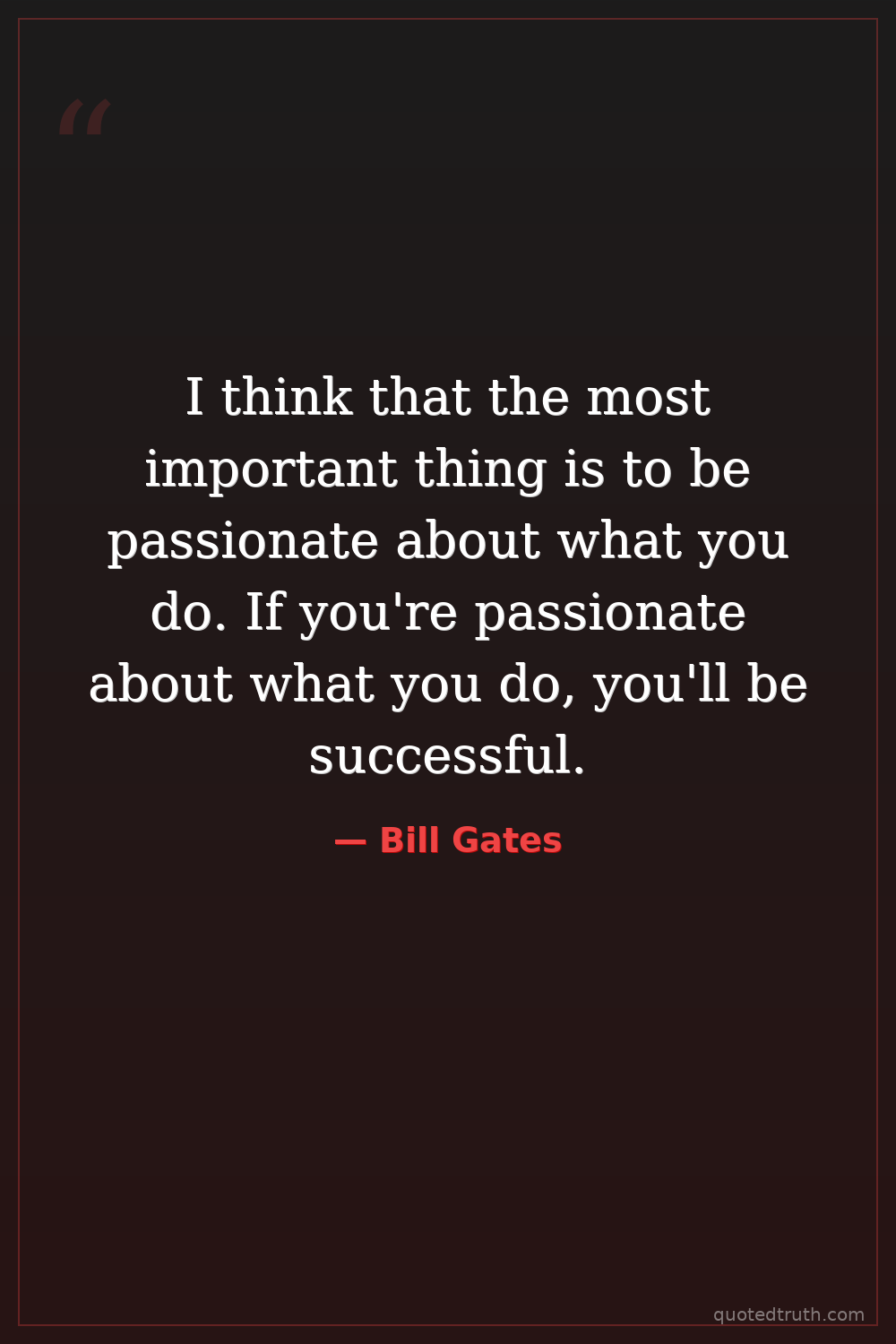 I think that the most important thing is to be passionate about what you do. If you're passionate about what you do, you'll be successful.
