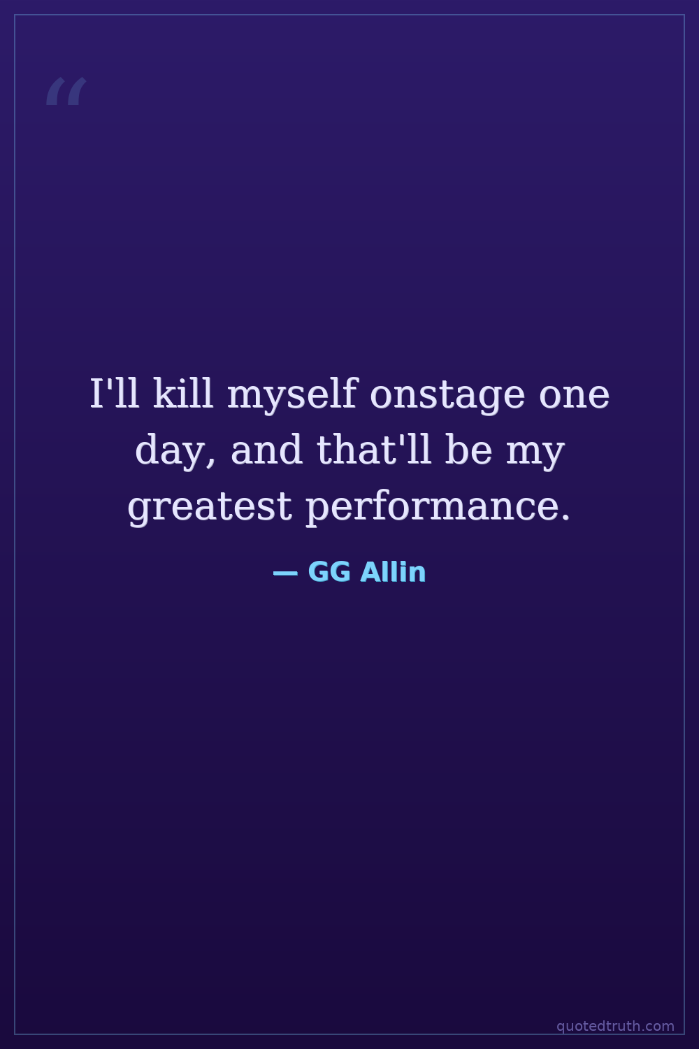 I'll kill myself onstage one day, and that'll be my greatest performance.