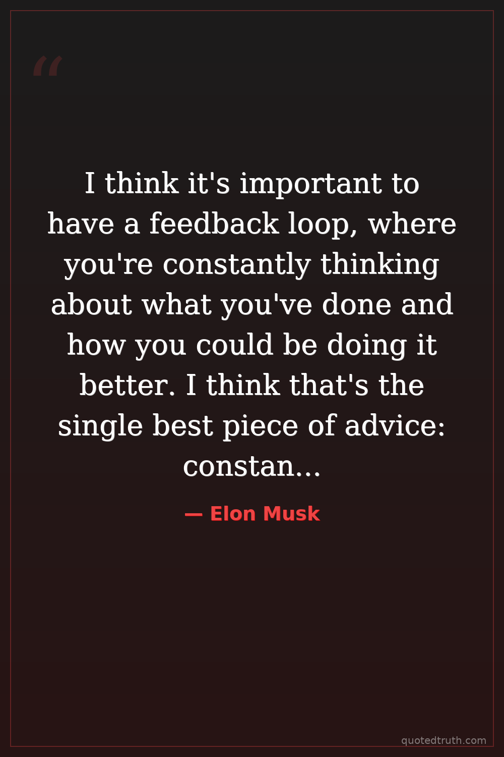 I think it's important to have a feedback loop, where you're constantly thinking about what you've done and how you could be doing it better. I think that's the single best piece of advice: constantly think about how you could be doing things better and questioning yourself.