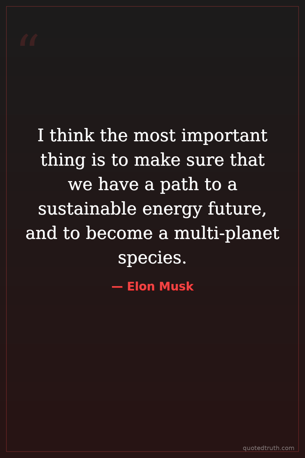 I think the most important thing is to make sure that we have a path to a sustainable energy future, and to become a multi-planet species.