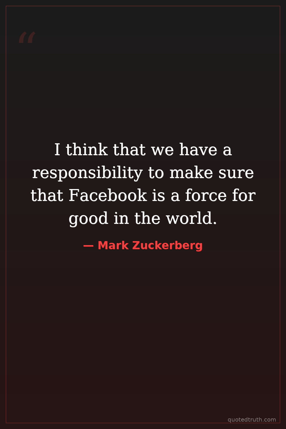 I think that we have a responsibility to make sure that Facebook is a force for good in the world.