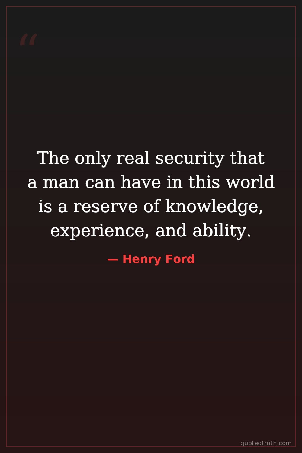 The only real security that a man can have in this world is a reserve of knowledge, experience, and ability.