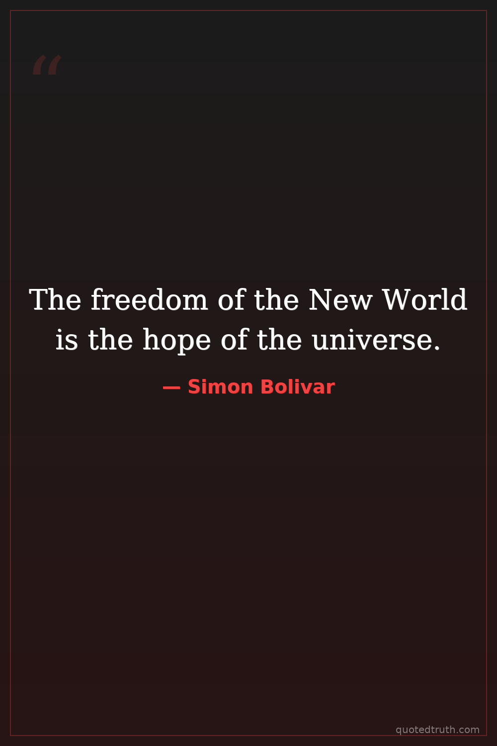 The freedom of the New World is the hope of the universe.