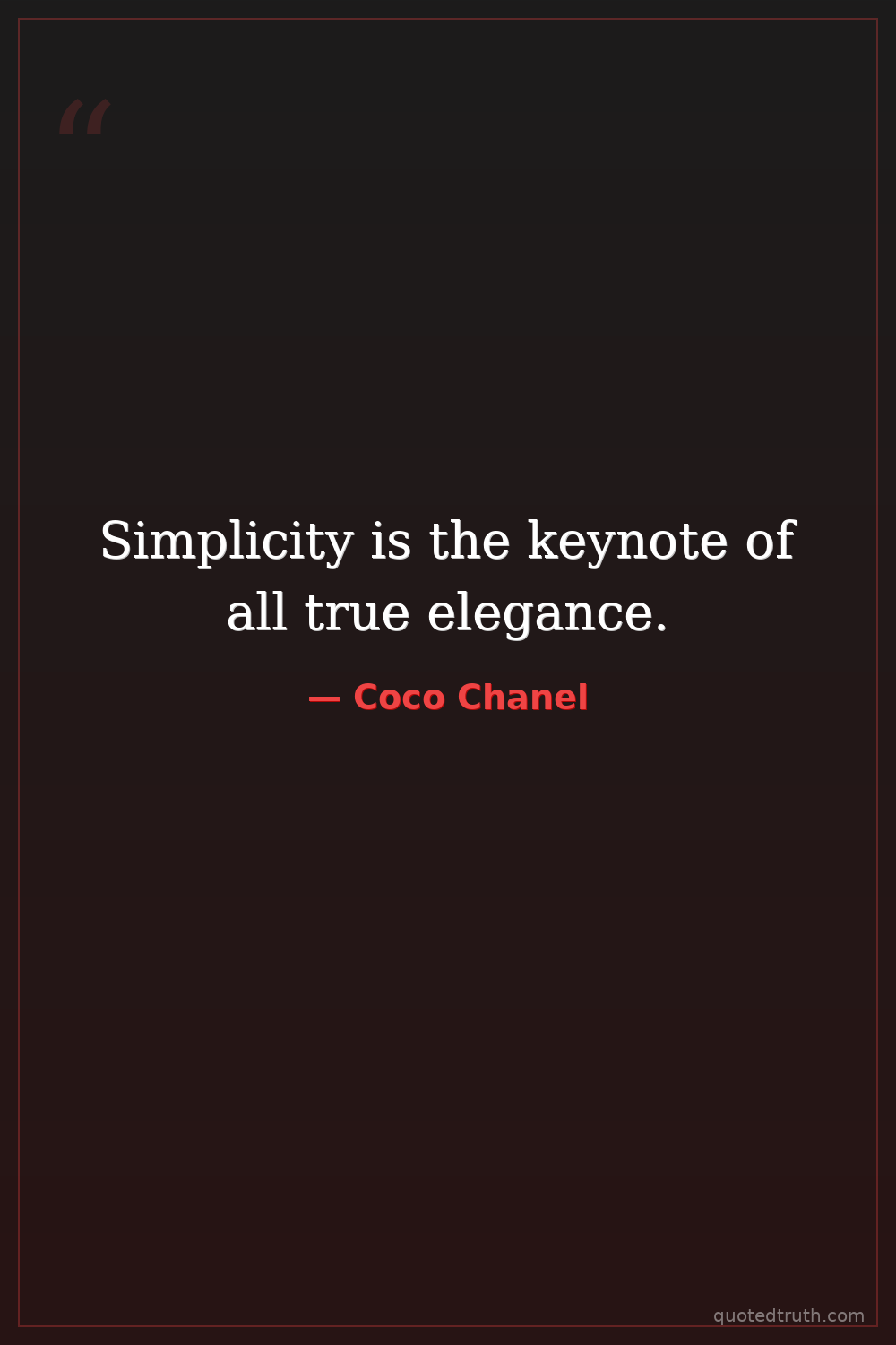 Simplicity is the keynote of all true elegance.