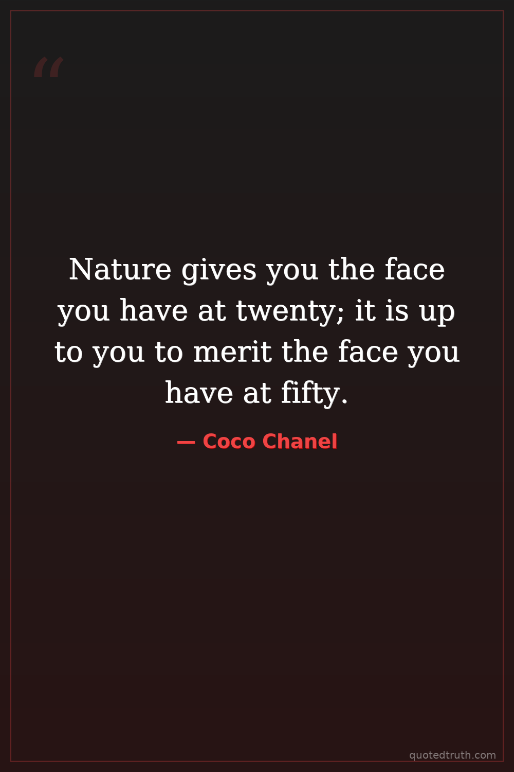 Nature gives you the face you have at twenty; it is up to you to merit the face you have at fifty.