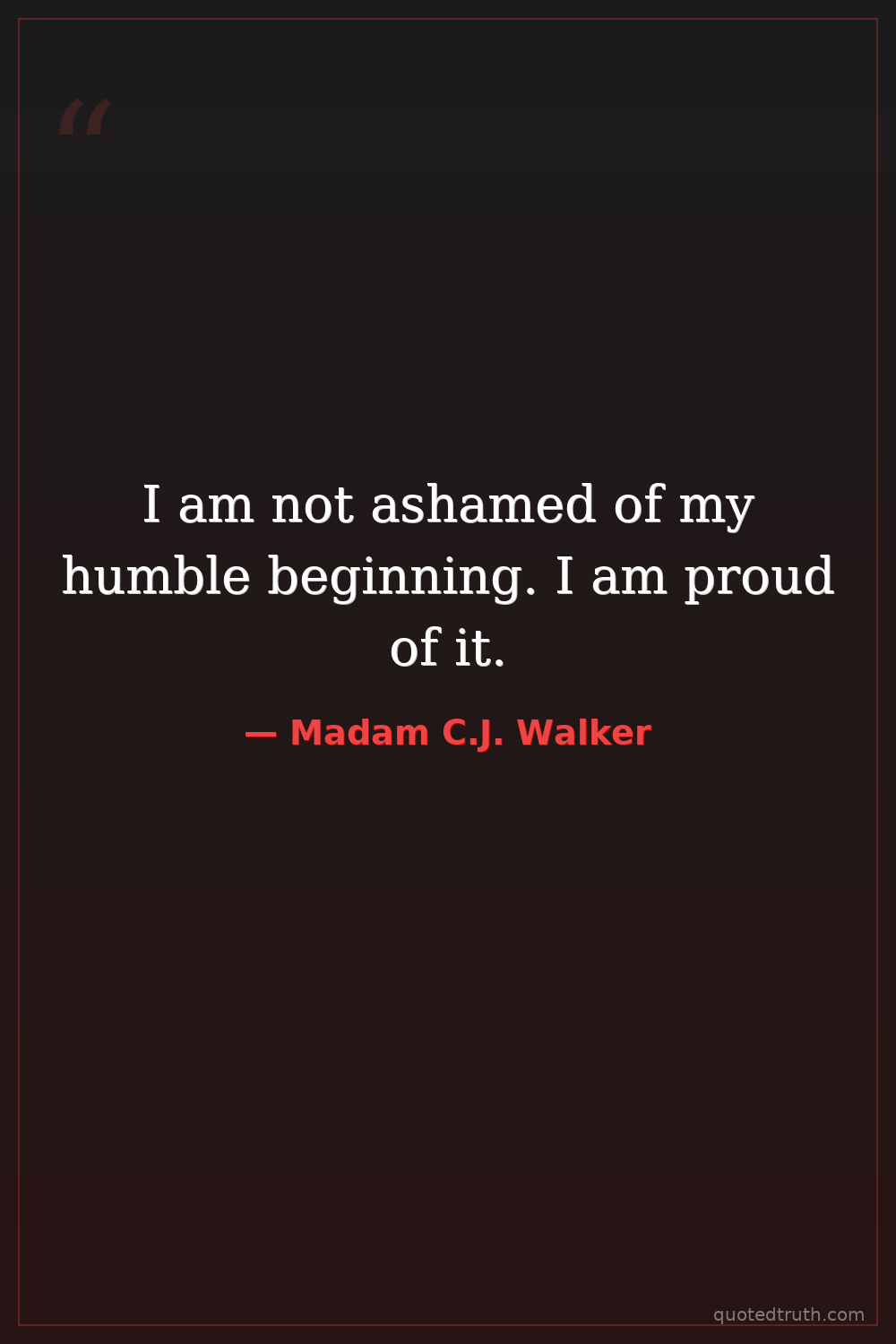 I am not ashamed of my humble beginning. I am proud of it.