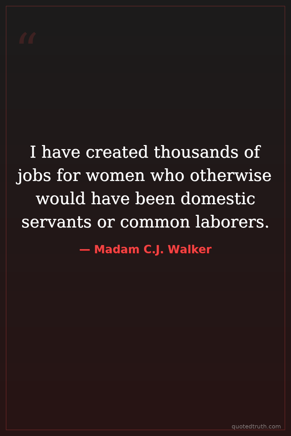 Strange & Unusual"I had to make my own living and my own opportunity. But I made it! Don't sit down and wait for the opportunities to come. Get up and make them!"