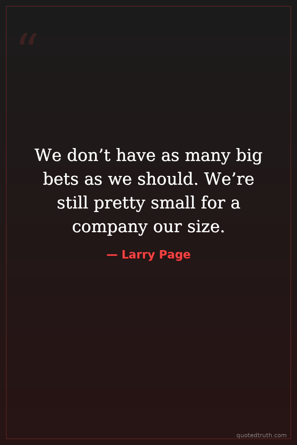 We don’t have as many big bets as we should. We’re still pretty small for a company our size.