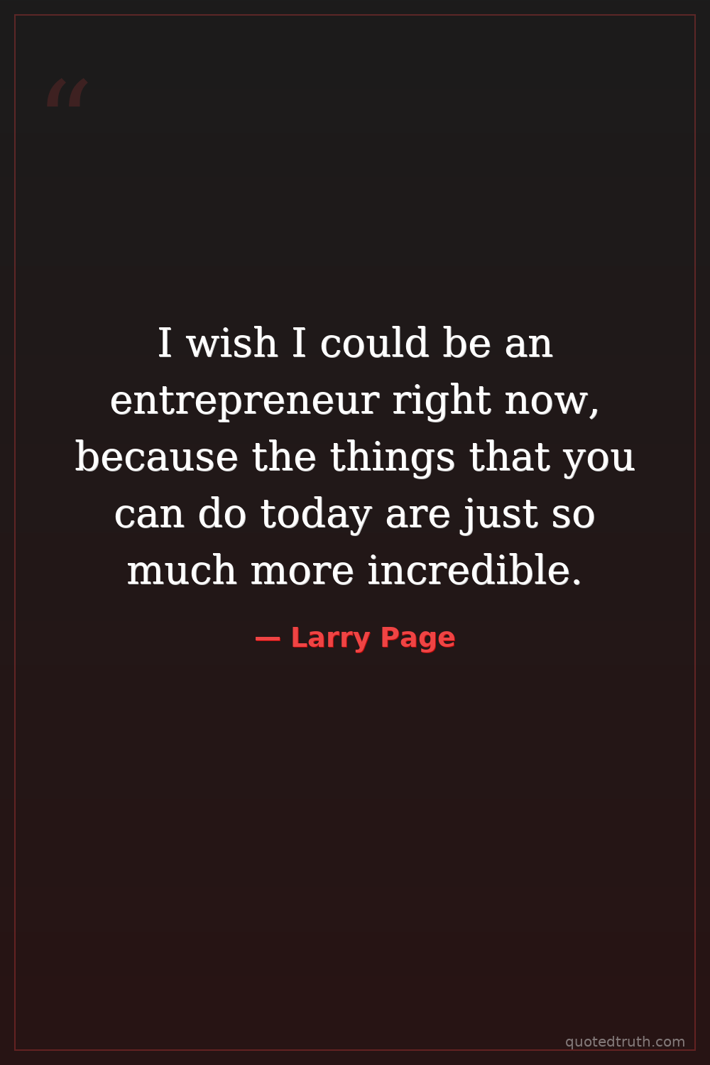 I wish I could be an entrepreneur right now, because the things that you can do today are just so much more incredible.