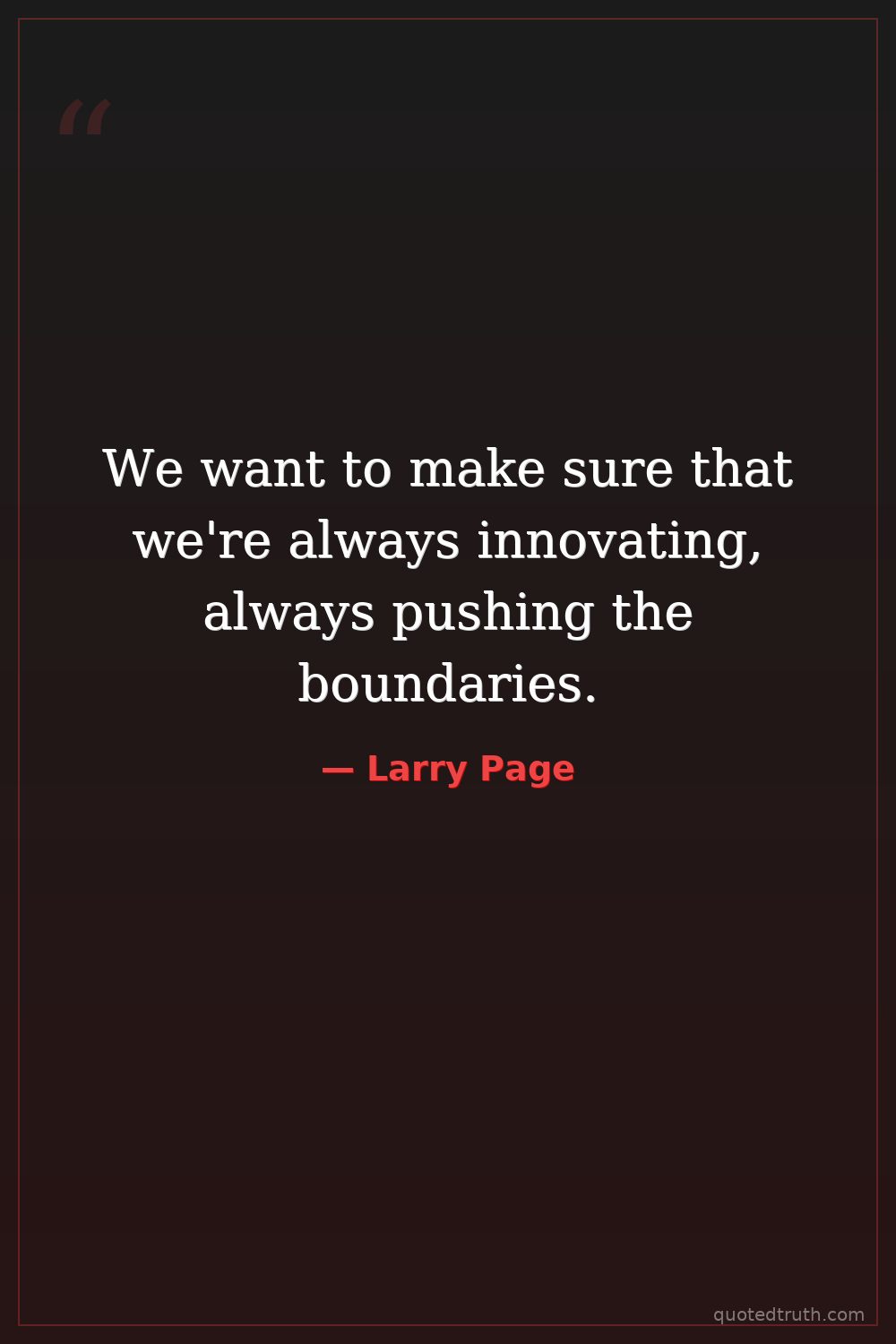 We want to make sure that we're always innovating, always pushing the boundaries.