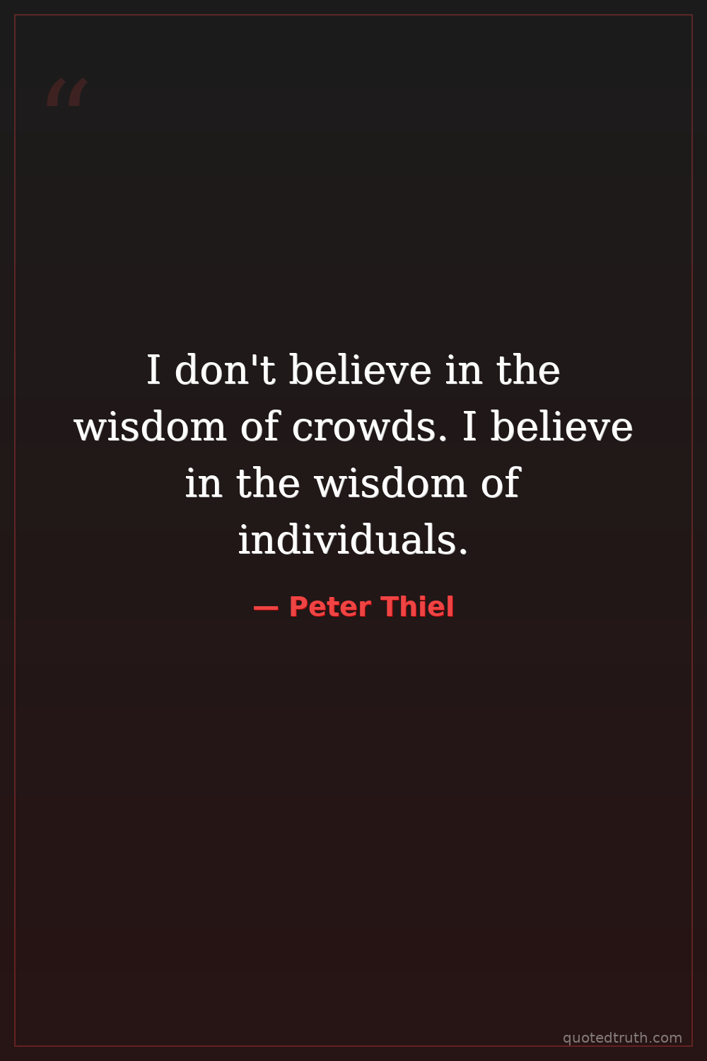 I don't believe in the wisdom of crowds. I believe in the wisdom of individuals.