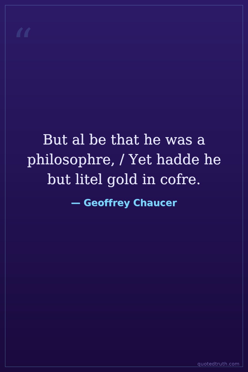 But al be that he was a philosophre, / Yet hadde he but litel gold in cofre.