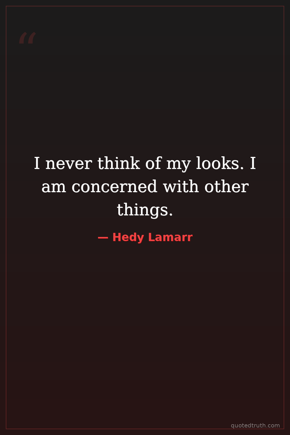 I never think of my looks. I am concerned with other things.