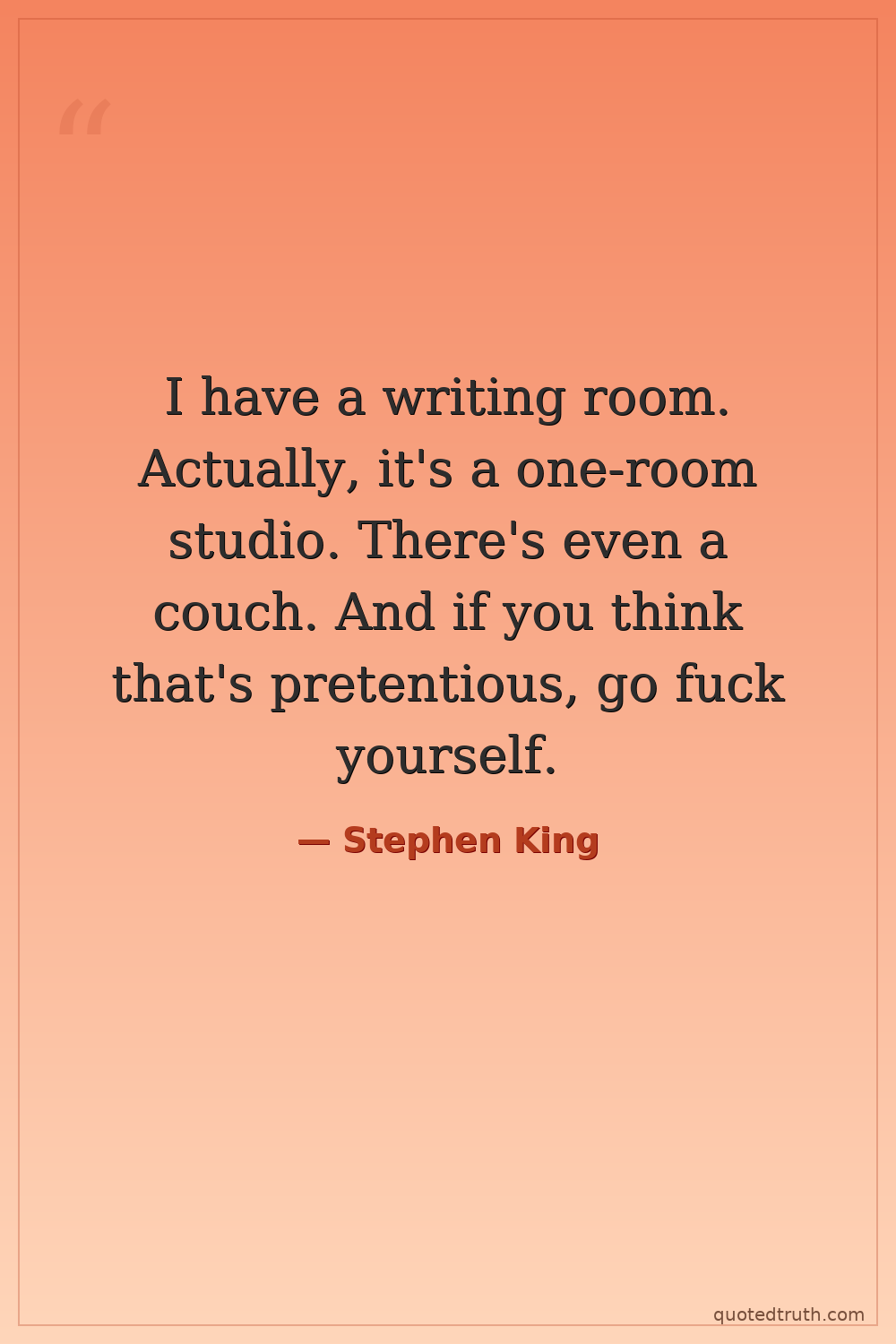 I have a writing room. Actually, it's a one-room studio. There's even a couch. And if you think that's pretentious, go fuck yourself.