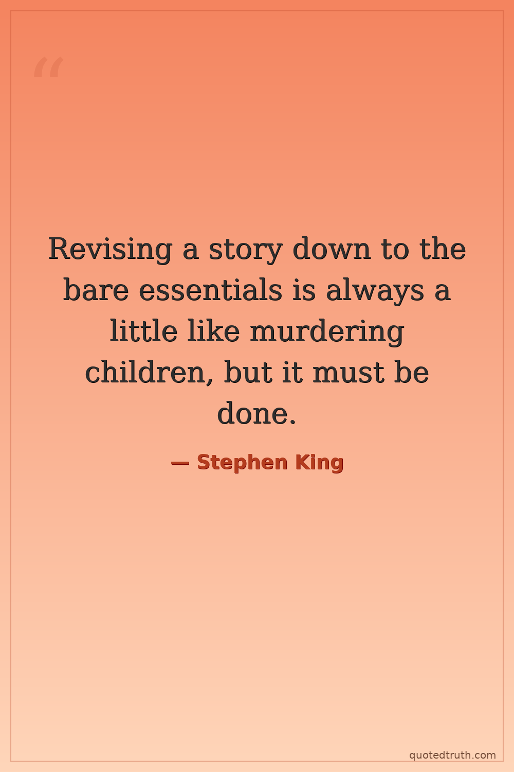 Revising a story down to the bare essentials is always a little like murdering children, but it must be done.