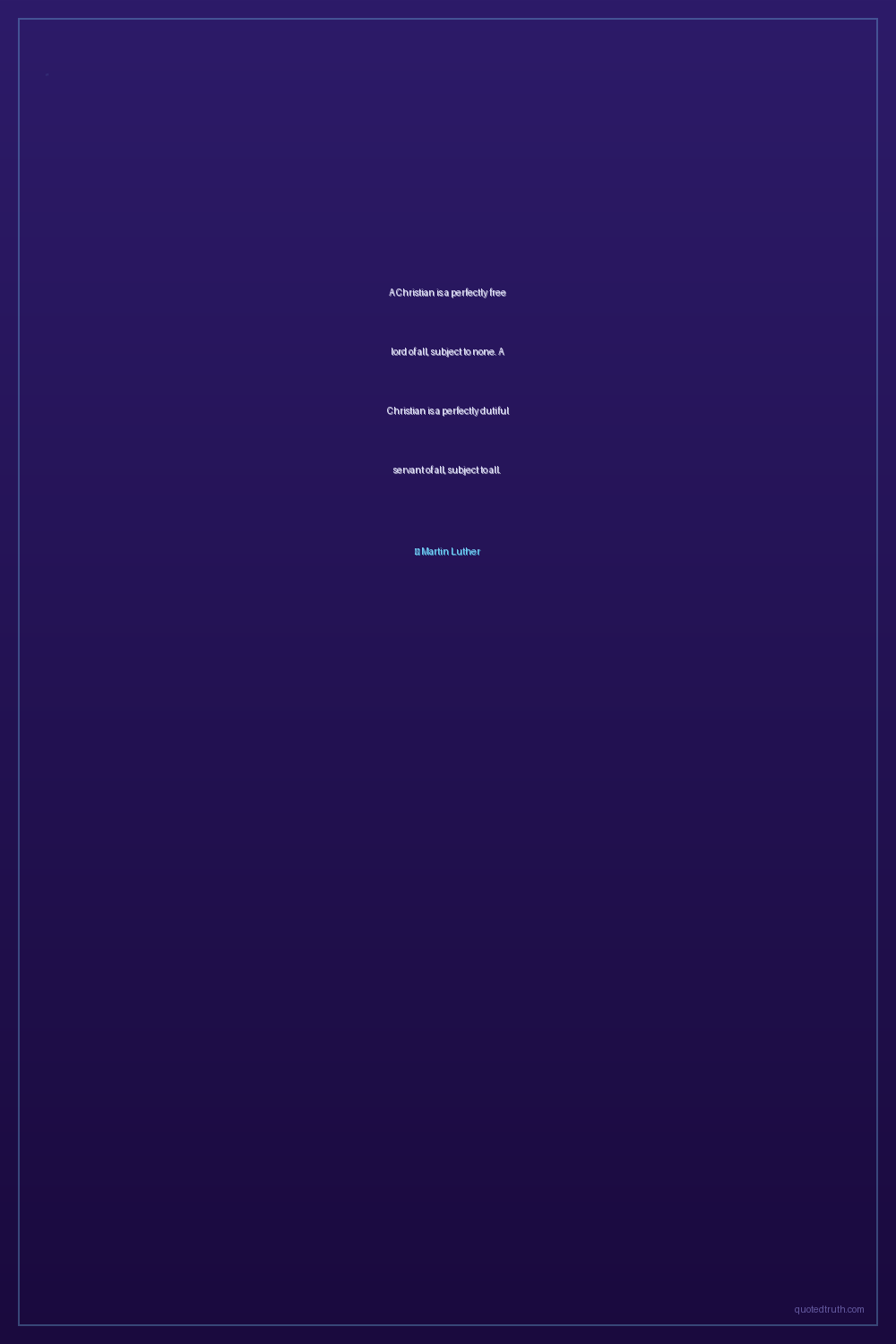 A Christian is a perfectly free lord of all, subject to none. A Christian is a perfectly dutiful servant of all, subject to all.