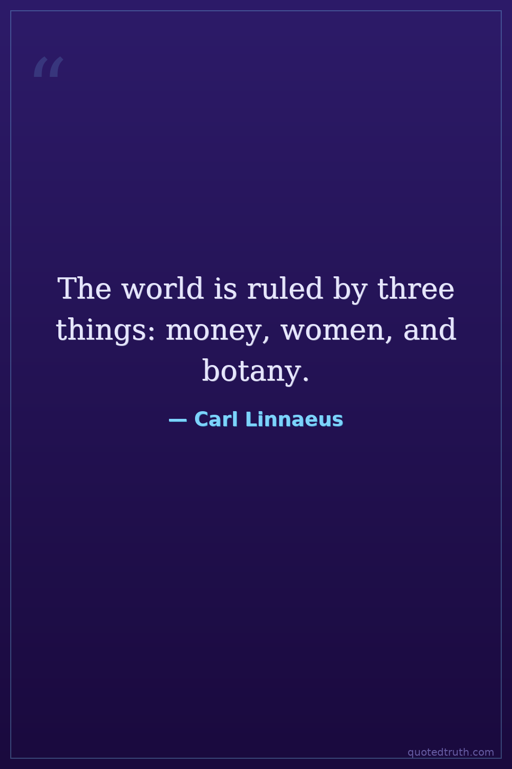 The world is ruled by three things: money, women, and botany.
