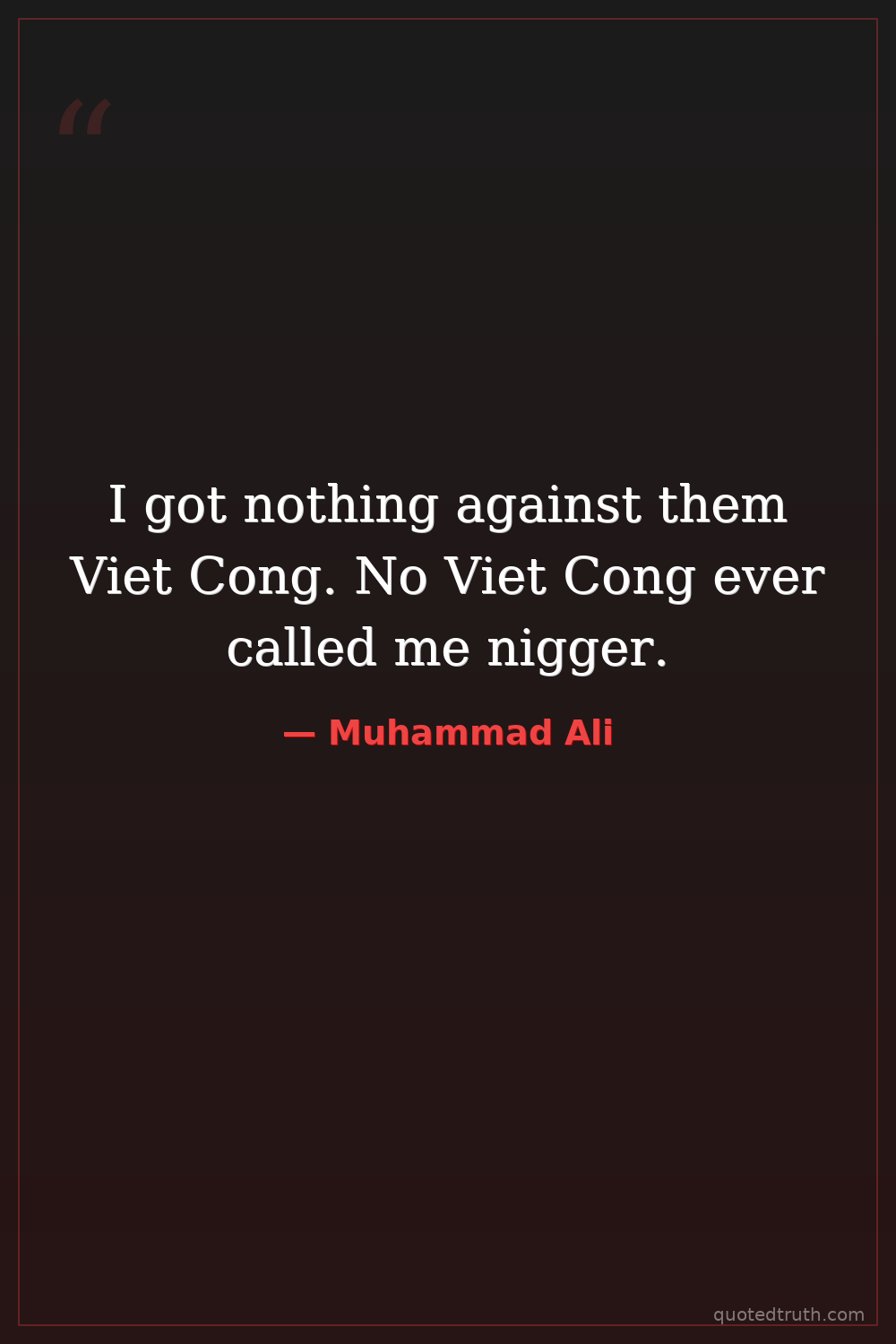 I got nothing against them Viet Cong. No Viet Cong ever called me nigger.