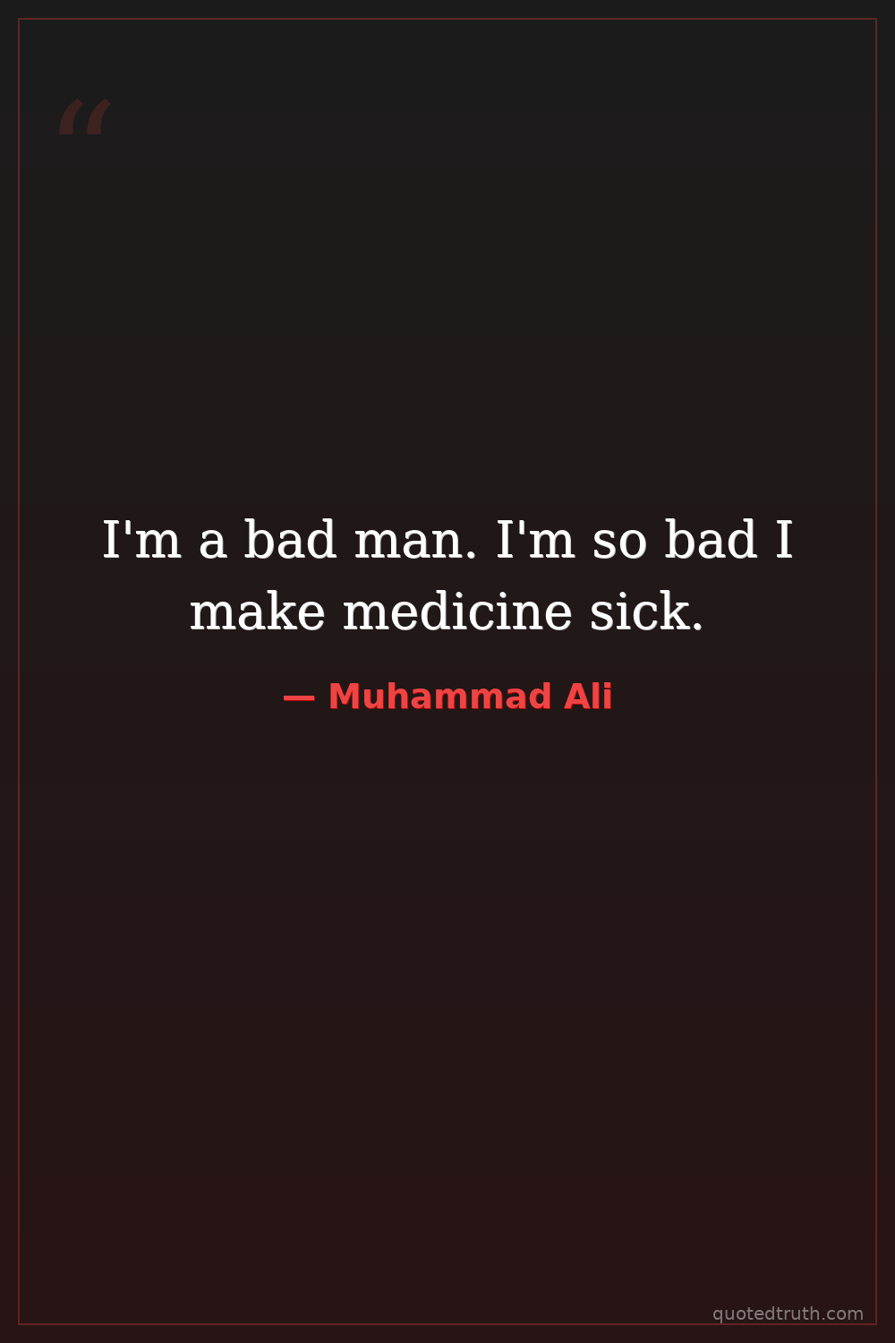 I'm a bad man. I'm so bad I make medicine sick.