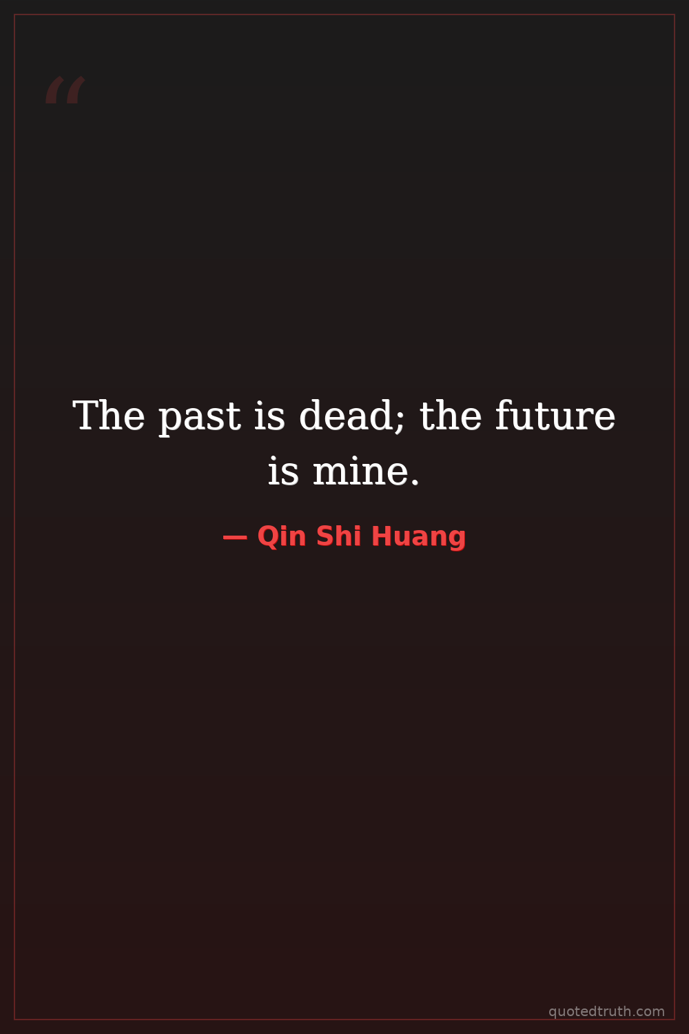 Controversial"I have brought order to a chaotic world, and my descendants shall rule for a thousand generations. The past is but a shadow; the future is mine to command."
