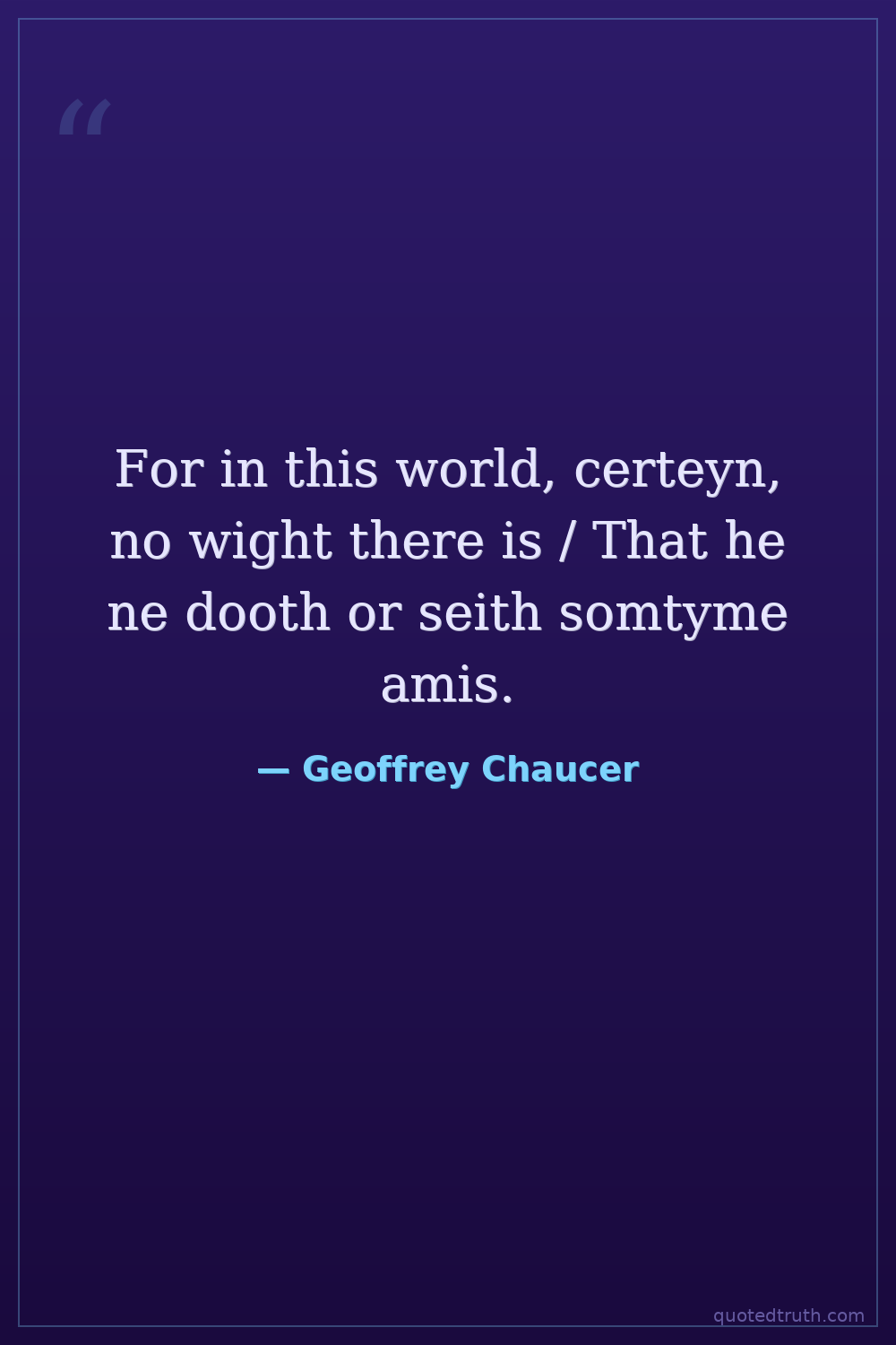 For in this world, certeyn, no wight there is / That he ne dooth or seith somtyme amis.