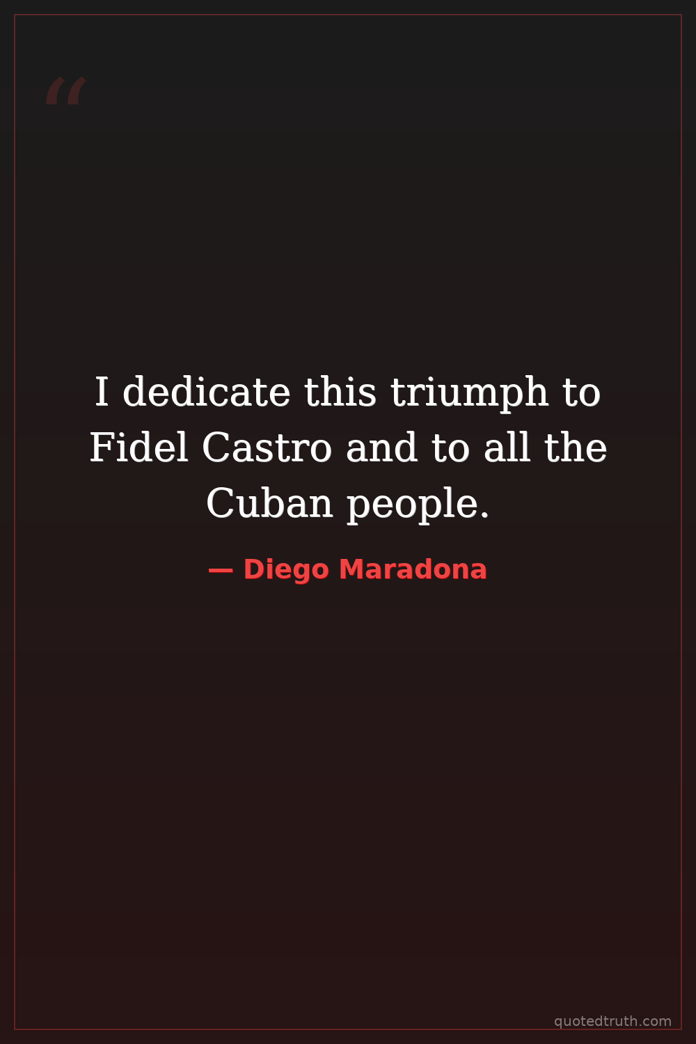 I dedicate this triumph to Fidel Castro and to all the Cuban people.