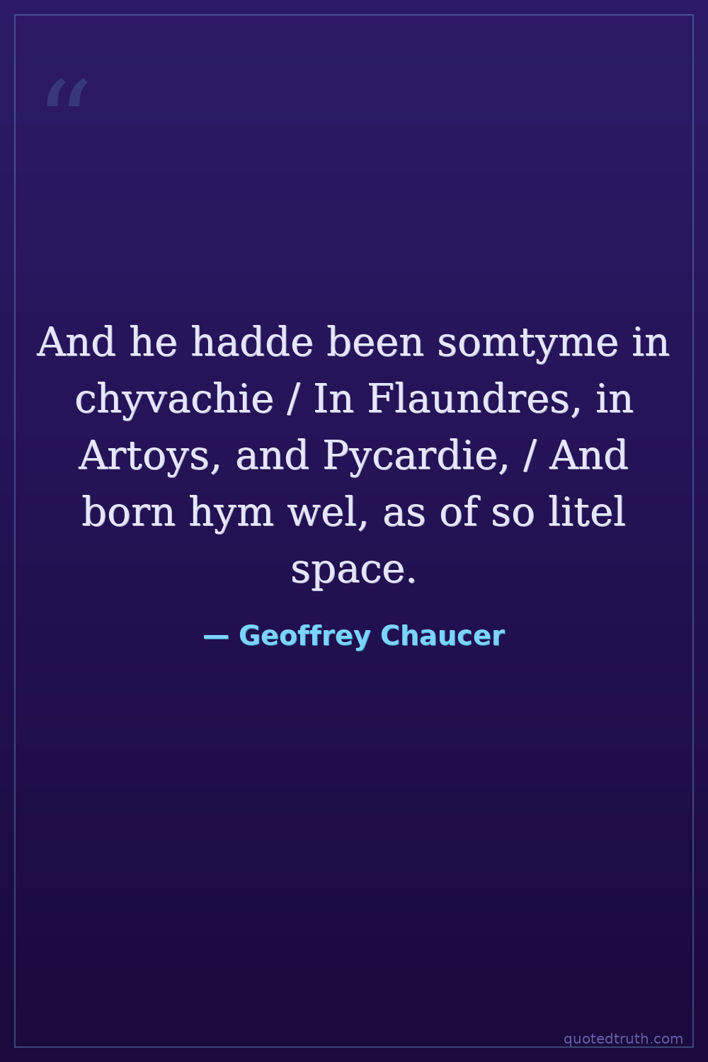And he hadde been somtyme in chyvachie / In Flaundres, in Artoys, and Pycardie, / And born hym wel, as of so litel space.