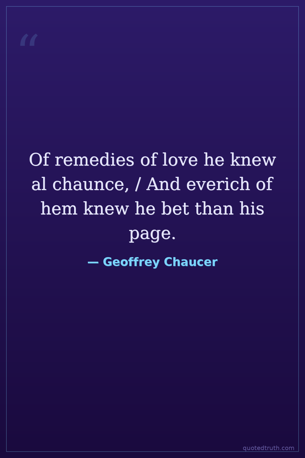 General Prologue to The Canterbury Tales, describing the Doctor of Physic's knowledge of 'remedies of love,' which is an unexpected and slightly scandalous skill for a physician.