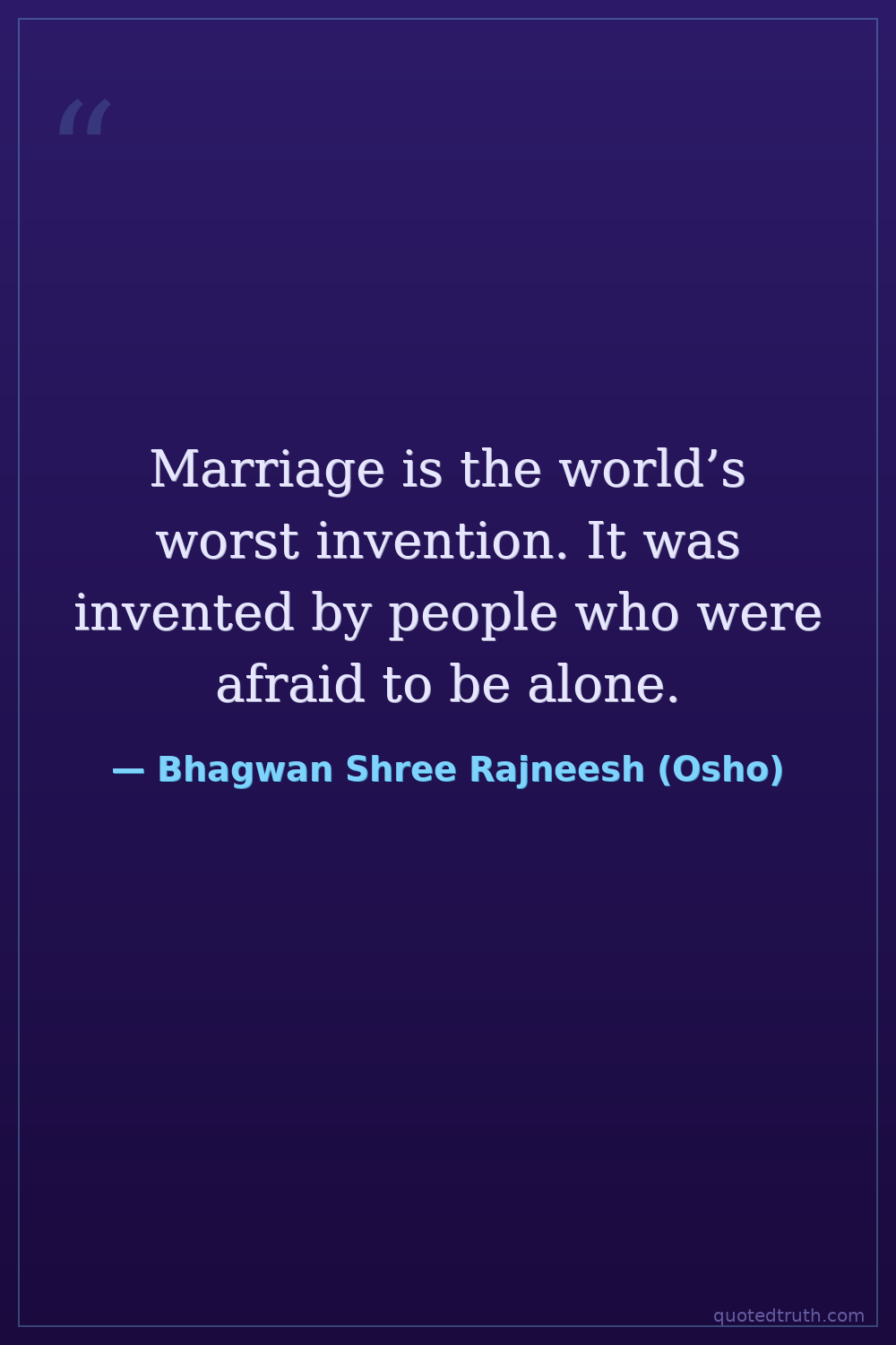 Marriage is the world’s worst invention. It was invented by people who were afraid to be alone.